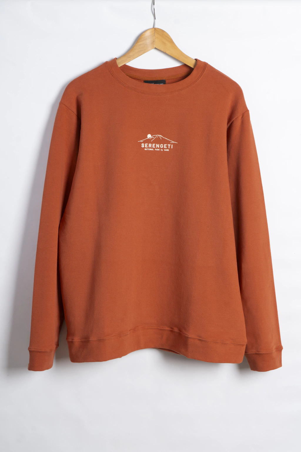 El buzo Serengeti llega para completar nuestra colección Parques, inspirado en la majestuosidad del Parque Nacional Seregenti. Su color terracota es ideal para combinar con la remera mostaza representando los tonos cálidos de un atardecer africano. Los detalles en el frente y en la espalda representan un pedacito de este lugar único, lleno de vida y naturaleza salvaje.