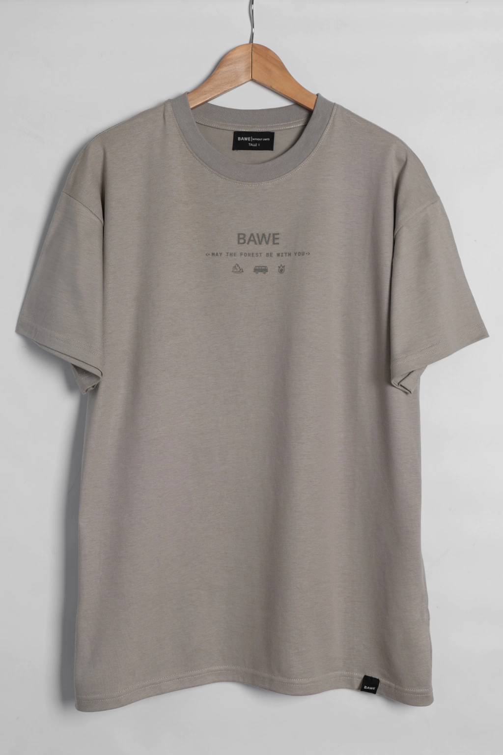 Estampa: Serigrafía adelante y atrás en color gris oscuro.
